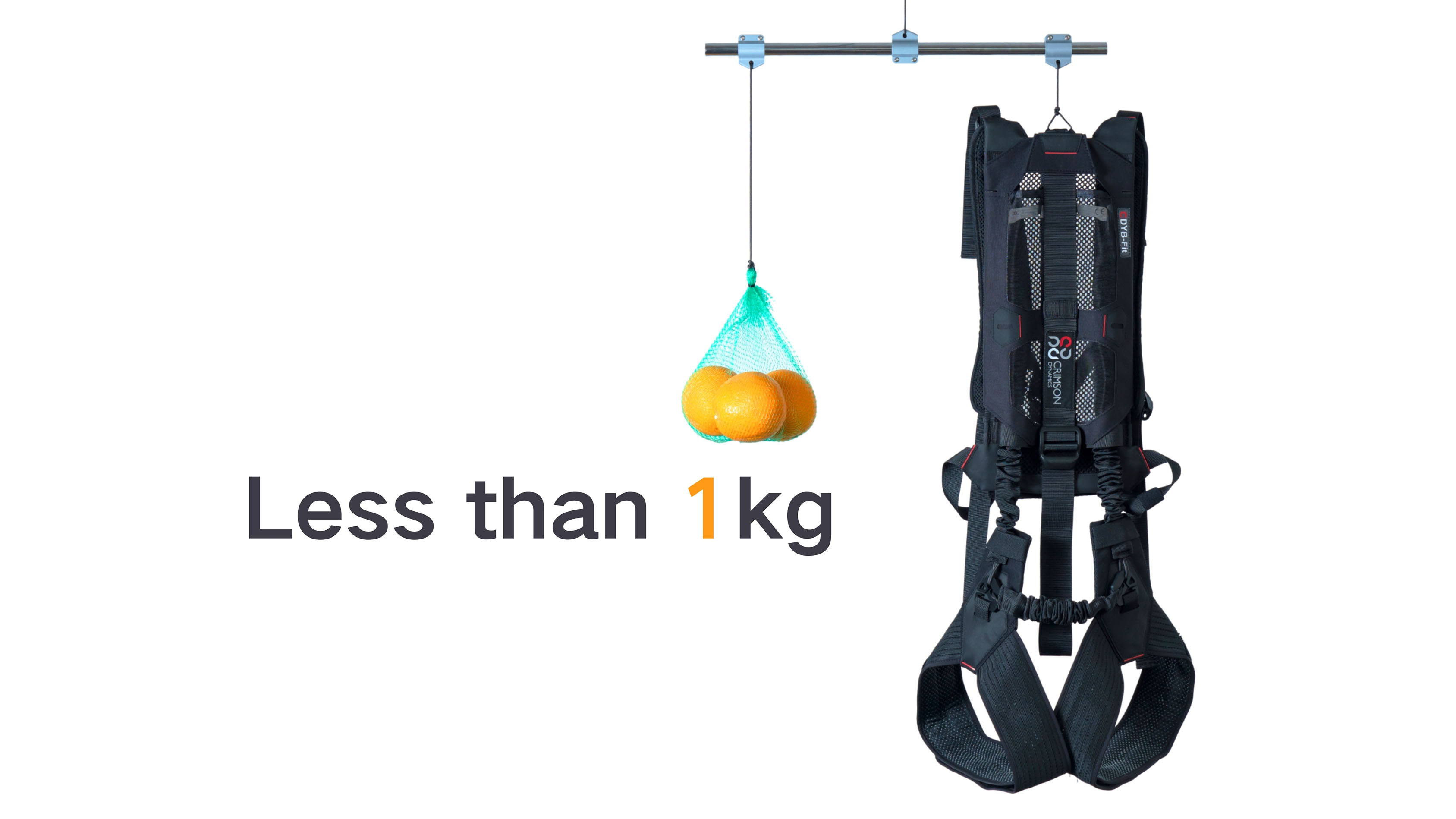 The CDYB-Fit is a fabric-based exosuit with a patented lightweight differential (hinge) mechanism for easy walking. An elastic element on the back supplies assistive force, helping with squatting and bending forward. Pulling on a single strap can easily adjust the amount of force.