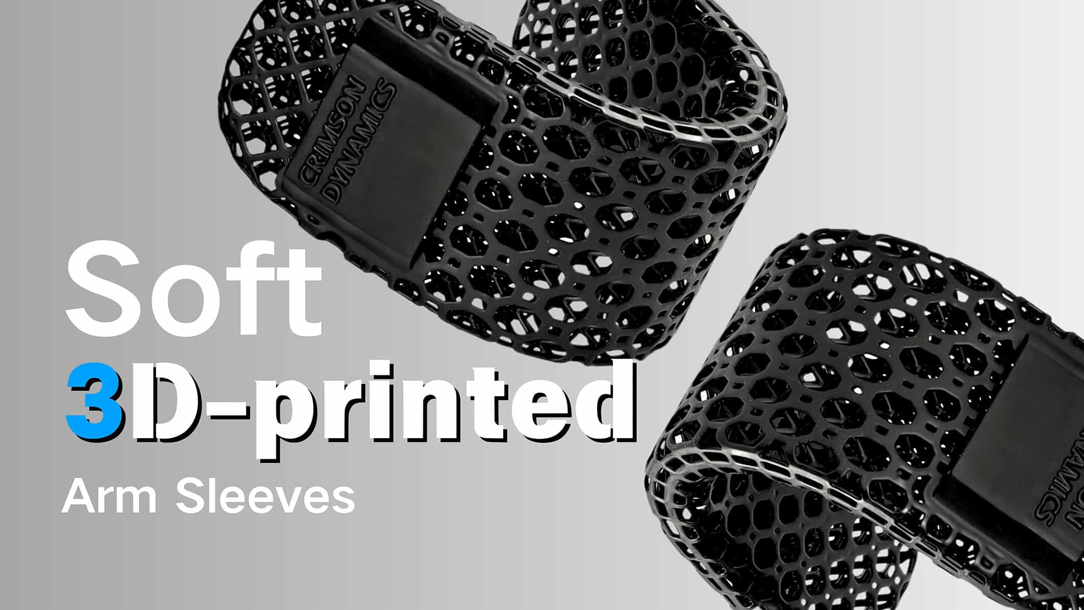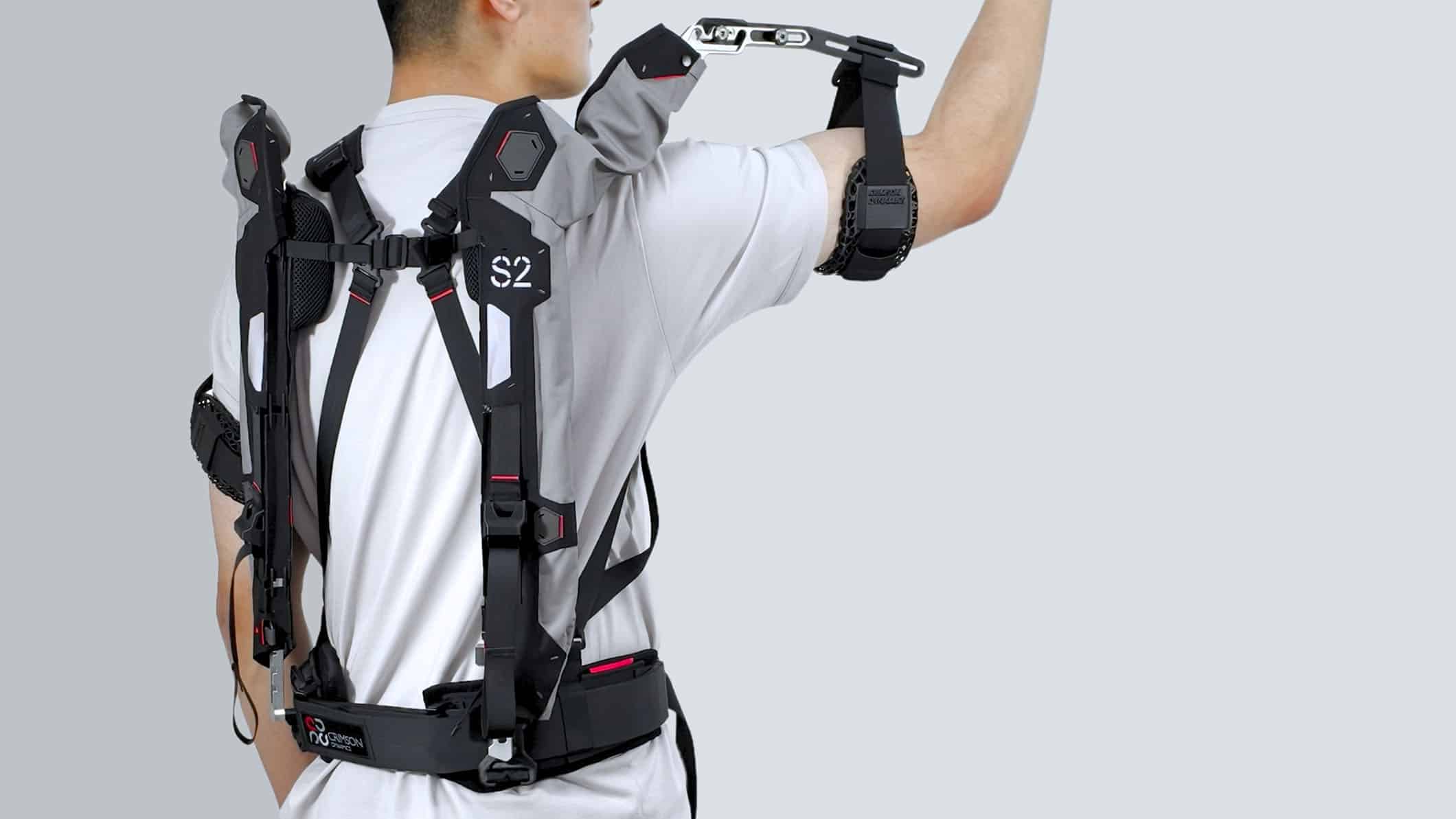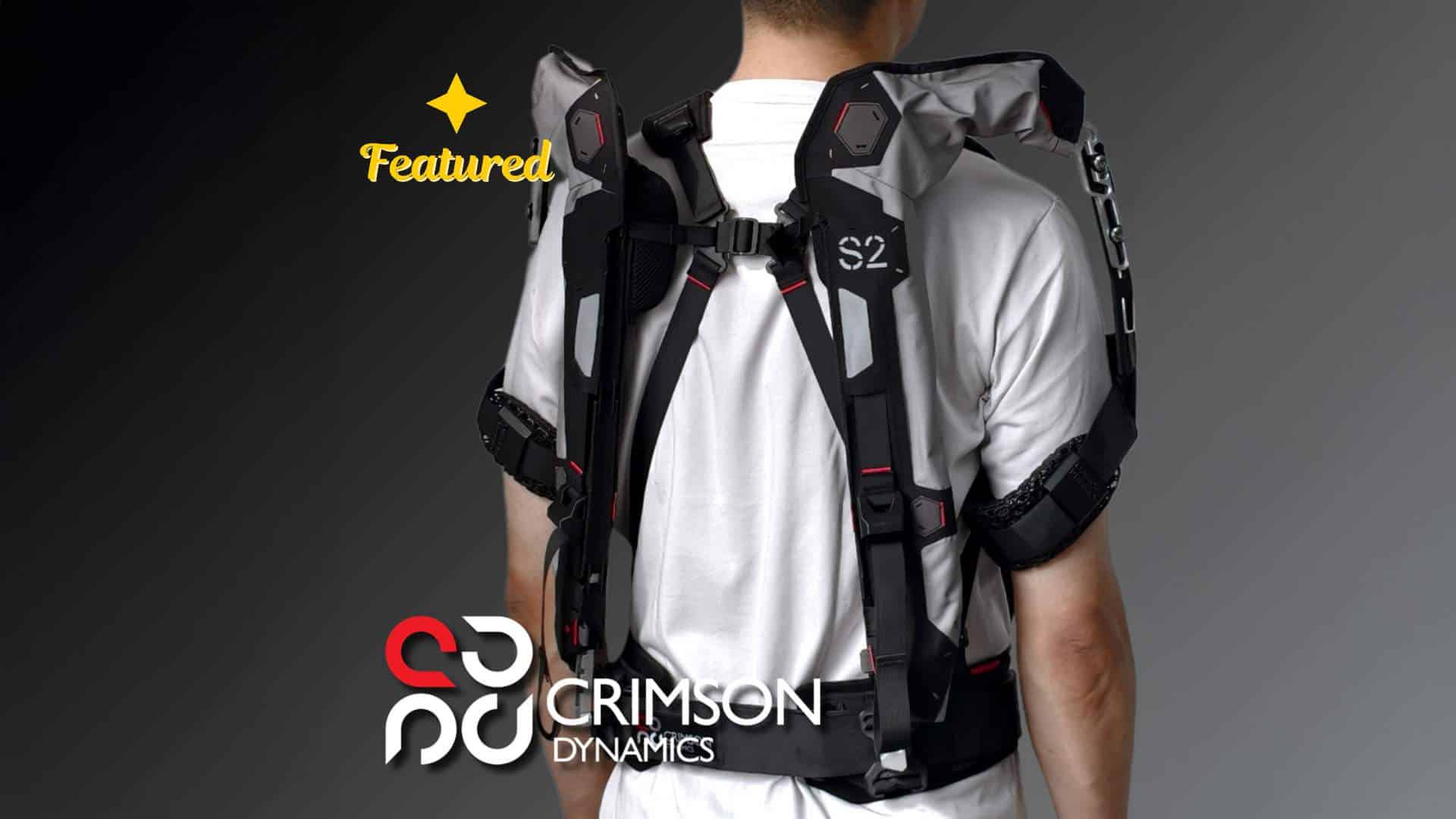 Crimson Dynamics highlights several design elements, including proprietary elastic “CrimsonFR” bands, a patented high-stability structure that enables a suspended arm-sleeve concept, and an on-body size-adjustment approach using a synchronized adjustment belt.