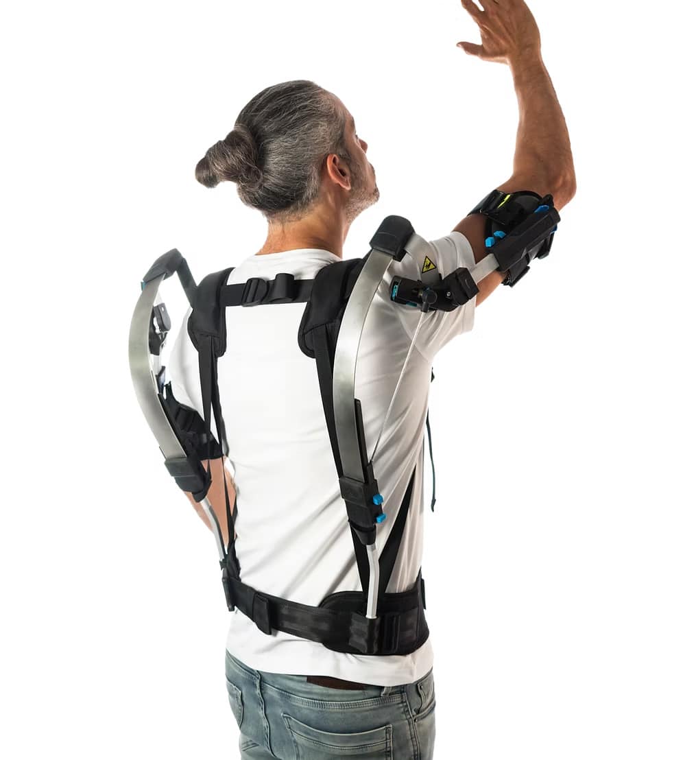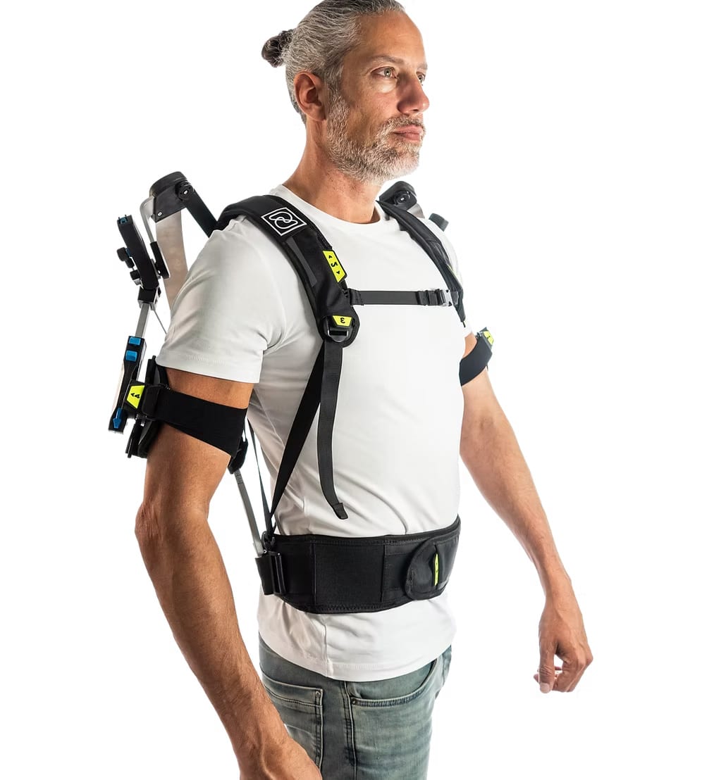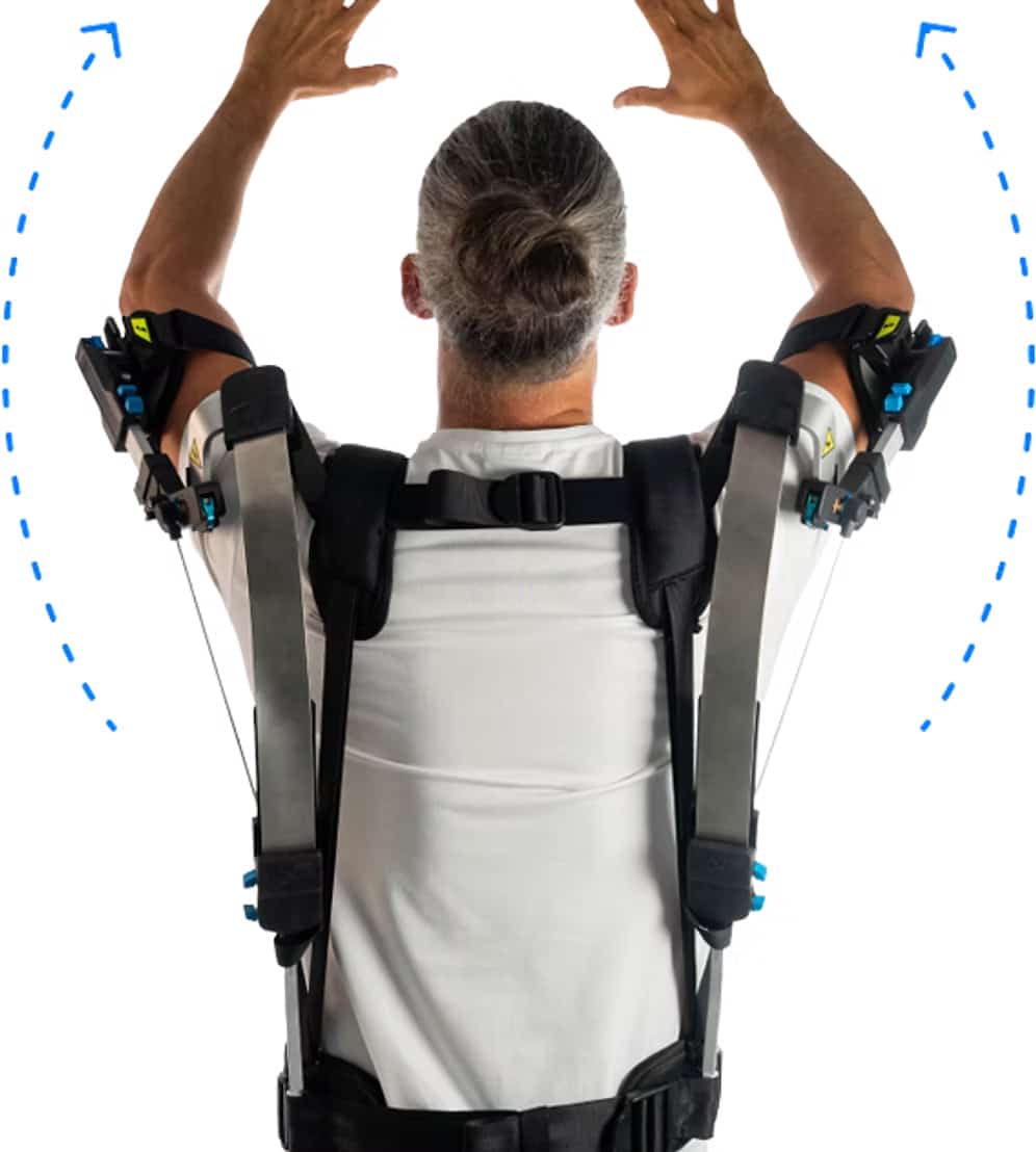 The Skelex 360-XFR was initially a collaboration between Skelex, Airbus, and TNO to combat workplace injuries from repetitive overhead work. The Skelex 360 supports the user’s shoulders using patented Flex frames reminiscent of a recurve bow.