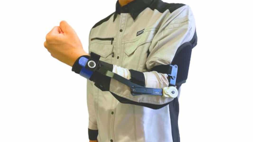 TASK AR +SE could be cataloged as an exoskeleton-adjacent wearable assistive orthosis rather than a full shoulder or arm exoskeleton. It is intended to reduce load on the forearm and elbow during continuous tasks involving relatively light objects or tools of about 5 kg (11 lb), such as painting, fixed-angle tool use, or gimbal/stabilizer camera work.